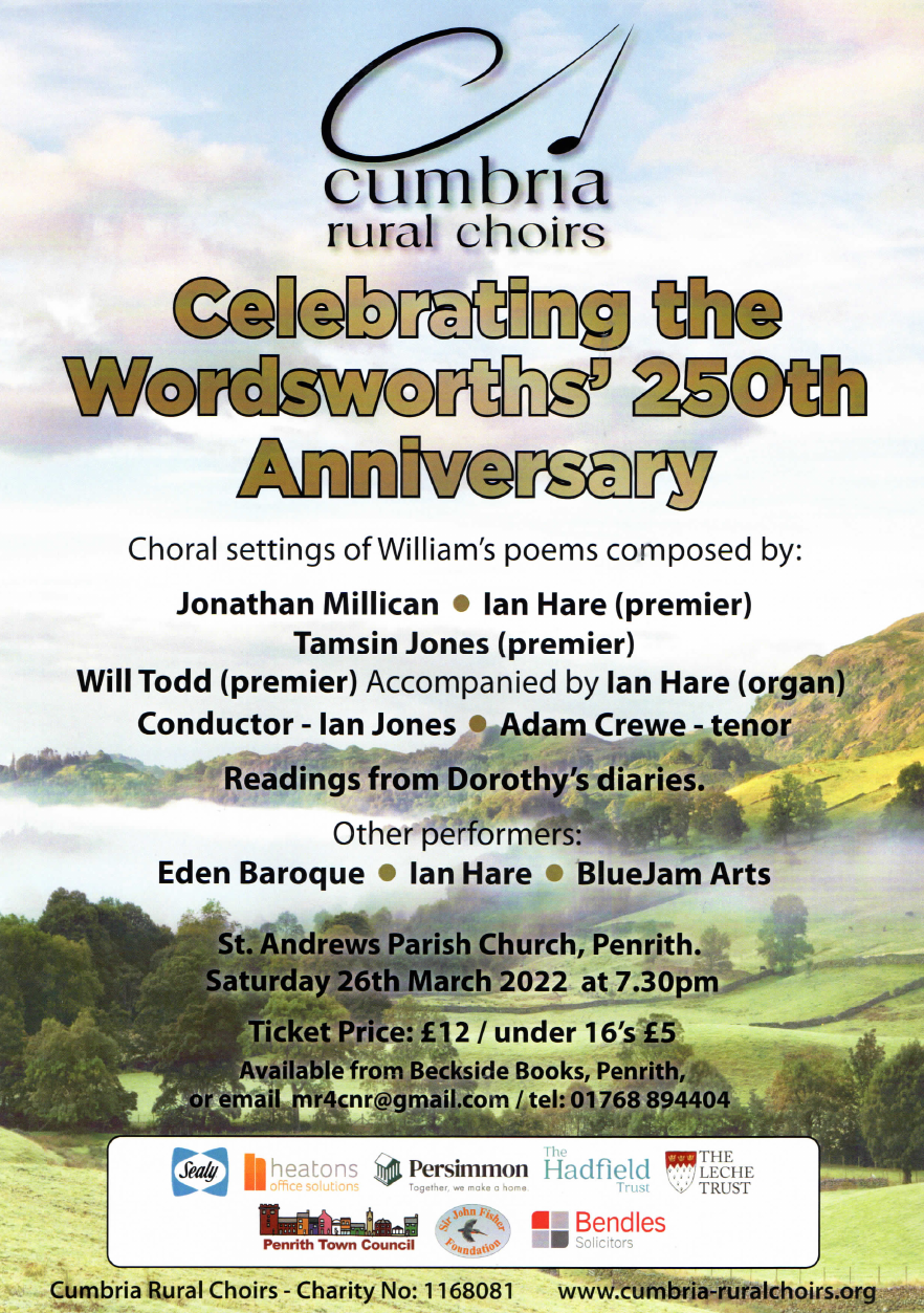 St. Andrew’s Church, Penrith was selected as the venue for this concert because of Wordsworth’s historical associations with the town in which he spent his early school years. We celebrated the lives of both William and his sister Dorothy, also a poet and author. Originally planned for 2020, marking the 250th anniversary of the birth of William, the event also marked the 250th …